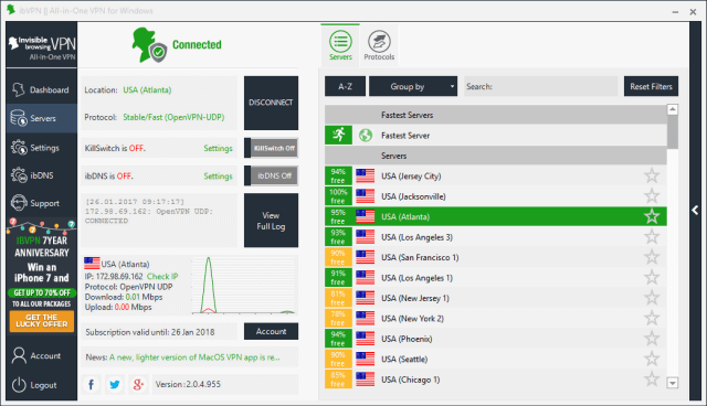 数量众多的全球高速服务器,任君选择;我们的的代理服务器,分布在十多个不同地区机房:美国、日本、新加坡、俄罗斯、加拿大、荷兰、法国、德国、英国、澳大利亚 等等。玩家可以专心使用,沉浸在游戏中,愉快地玩游戏,同时玩家会获得永久的VIP免费使用特权。ISP 可能会保留你访问的每个网站的日志。